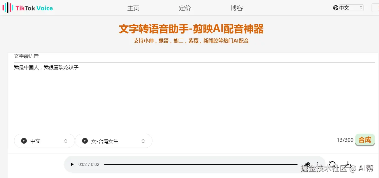 1.剪映AI配音(TikTok语音)