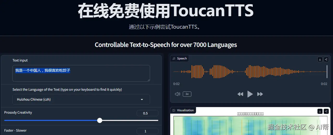 ToucanTTS是一套用于最先进语音合成的工具包,一个覆盖超过7,000种语言的大型多语言模型。ToucanTTS是专为对话场景设计的语音生成模型,特别适用于大型语言模型(LLM)助手的对话任务,以及诸如对话式音频和视频介绍等应用。