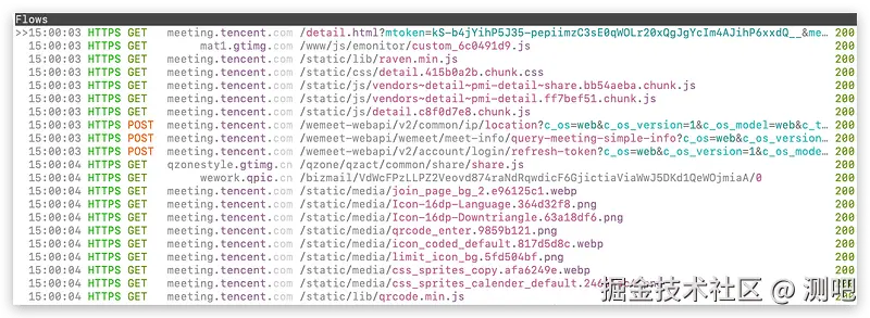 mitmweb启动。它和 Chrome 开发者工具中的 network 比较类似。下图为 mitmweb 启动后的效果图: