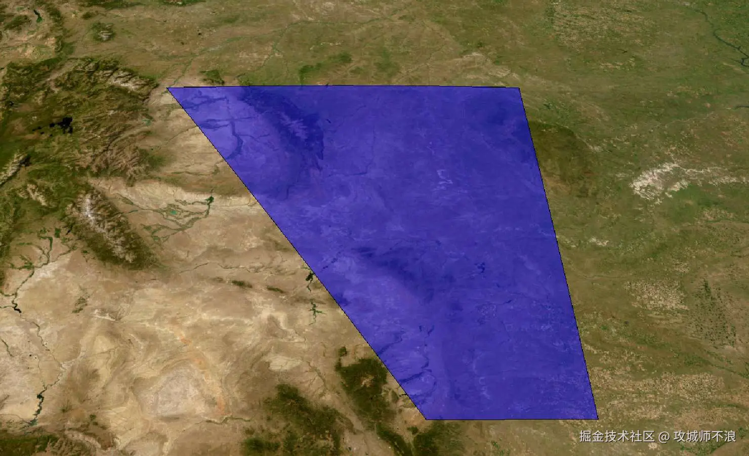 Cesium.Rectangle.fromDegrees(west, south, east, north)方法,通过指定四个经纬度边界值来定义矩形的区域:- 西边界:-110.0 (西经 110 度)