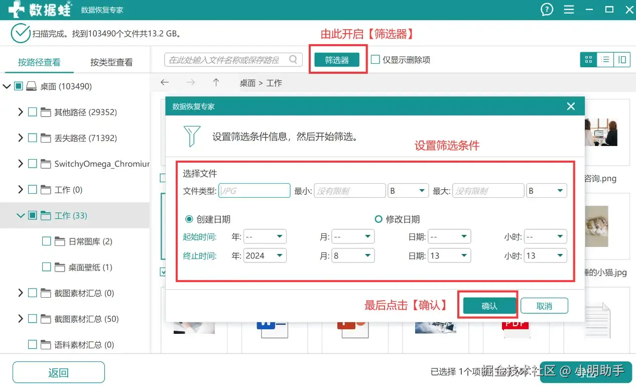 第2步: 深度扫描完成后,使用【筛选器】功能的话,能够缩小寻找目标文件的范围。