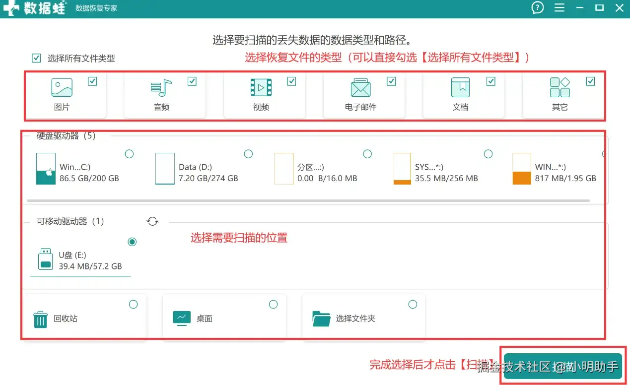 使用数据 蛙恢复专家,如何恢复删除的文件或文件夹?下面为具体使用步骤讲解: