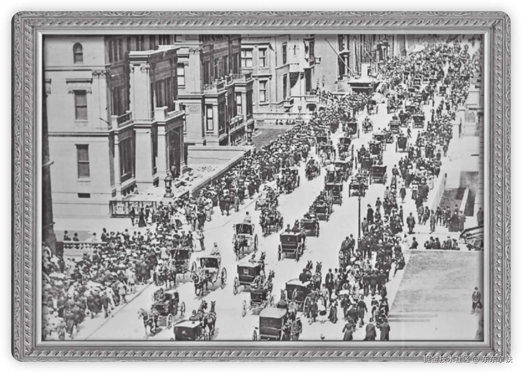 1900年,跑在纽约第五大道的主路上的都是马车。汽车在哪里?如果你仔细看的话,有几辆汽车跑在辅路上,很遭嫌弃的样子。是的,在那个时代,汽车是被马车嫌弃的。甚至,1865年英国还颁布了一部《机动车法案》。这部法案规定,每一辆在道路上行驶的机动车都必须由3个人驾驶,其中一个人必须在车前方50米以外,一边步行一边挥舞一面红色的小旗子为机动车开道,并且机动车的速度不能超过每小时6.4千米。为什么?怕吓着马。