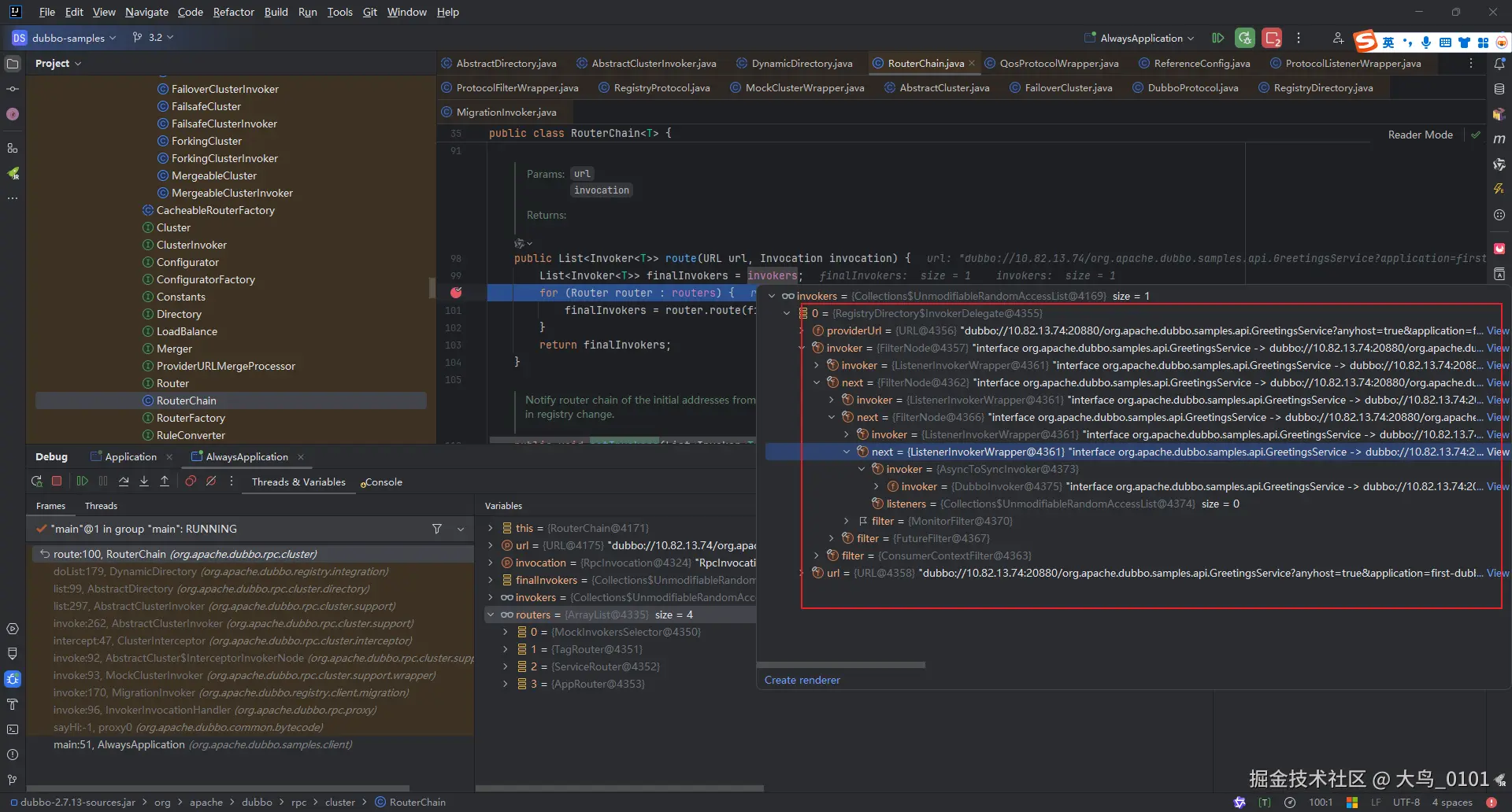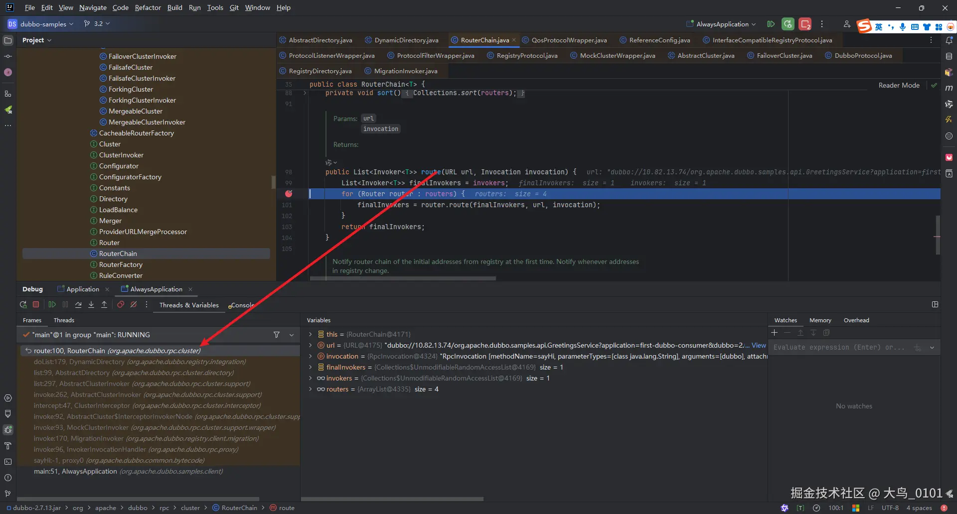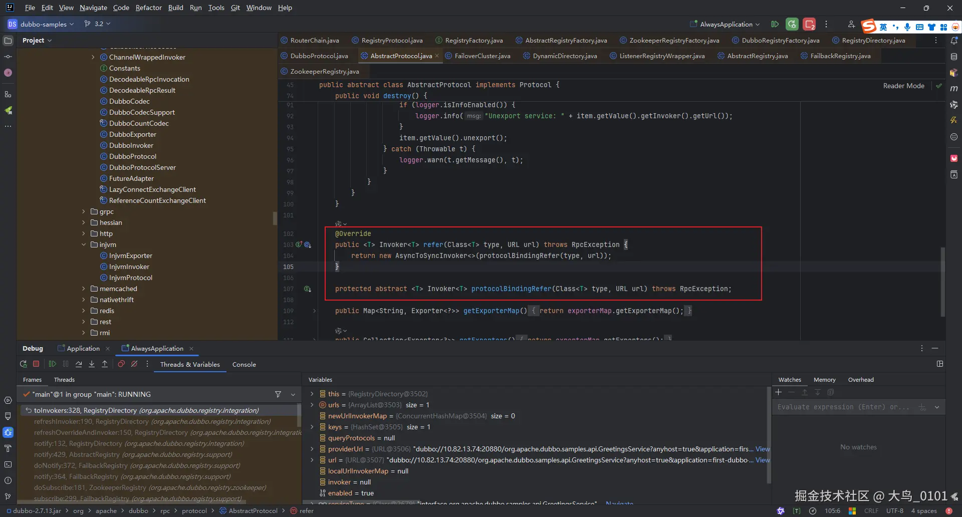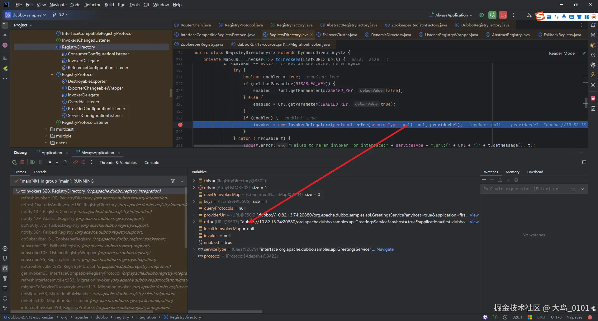 根据我们上面的debug截图 我们跳转 debug 到了 org.apache.dubbo.registry.integration.RegistryDirectory#refreshInvoker