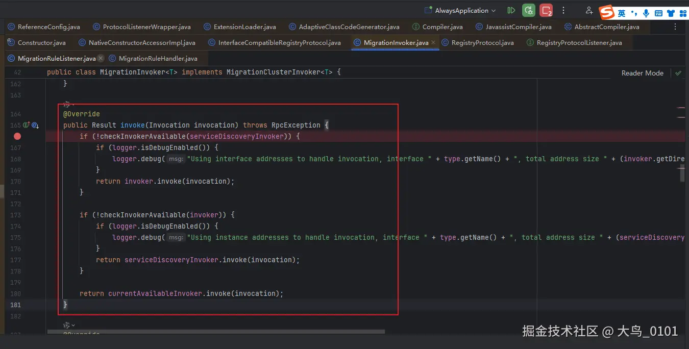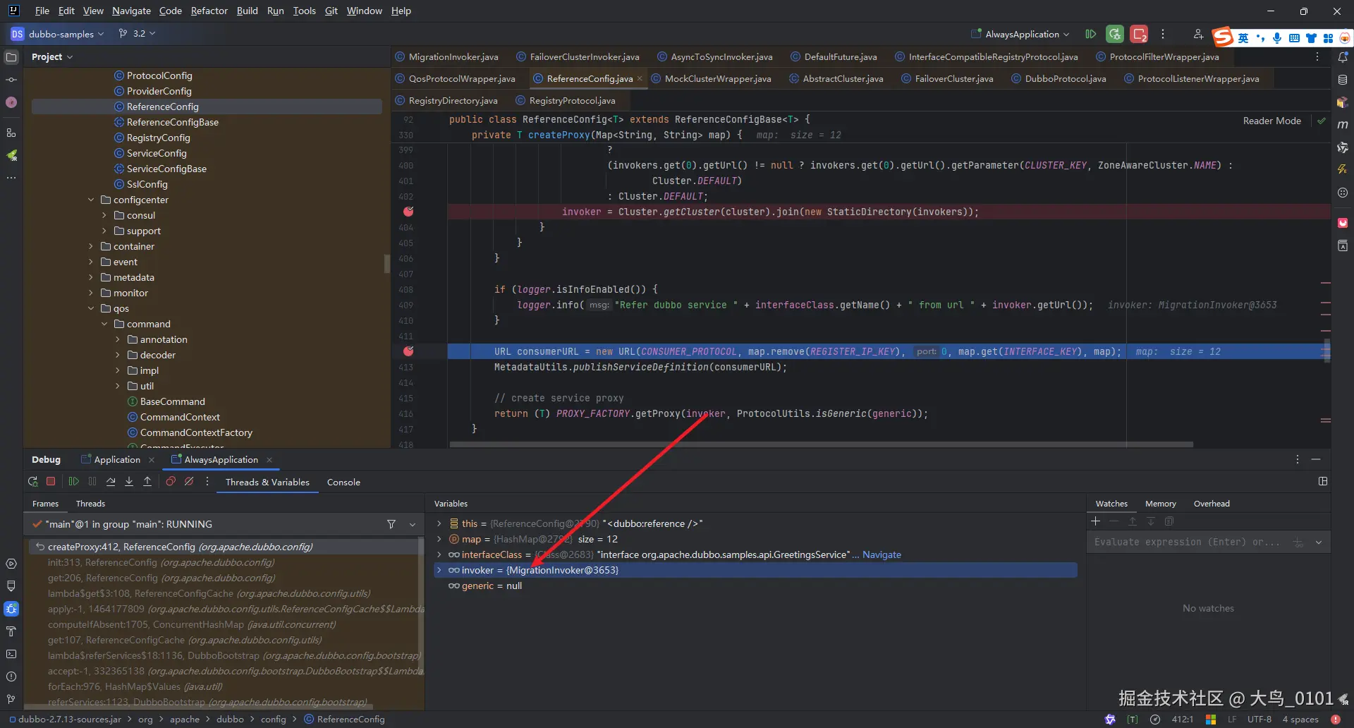 所以ReferenceConfig 最终拿到的这个MigrationInvoker,再进行代理的。我们可以debug来验证一下。可以看到非常正确啊。不容易啊