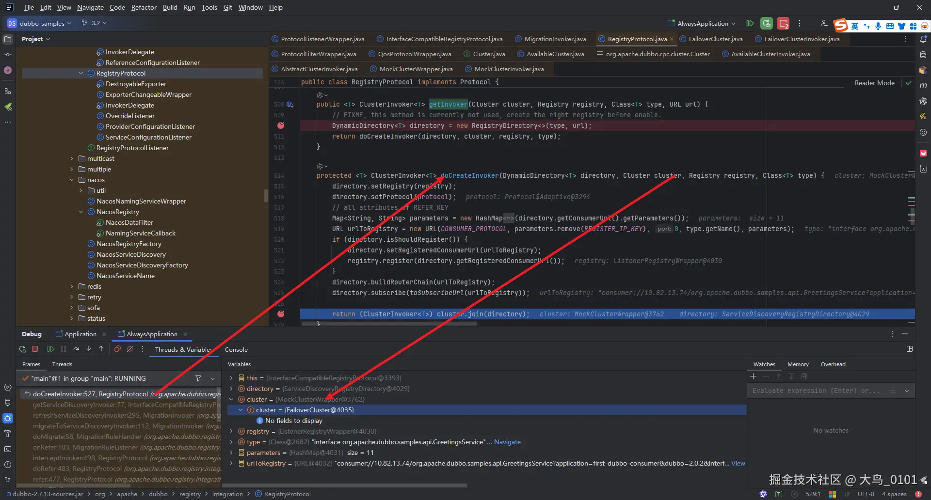 来我们继续debug org.apache.dubbo.registry.integration.RegistryProtocol#getInvoker