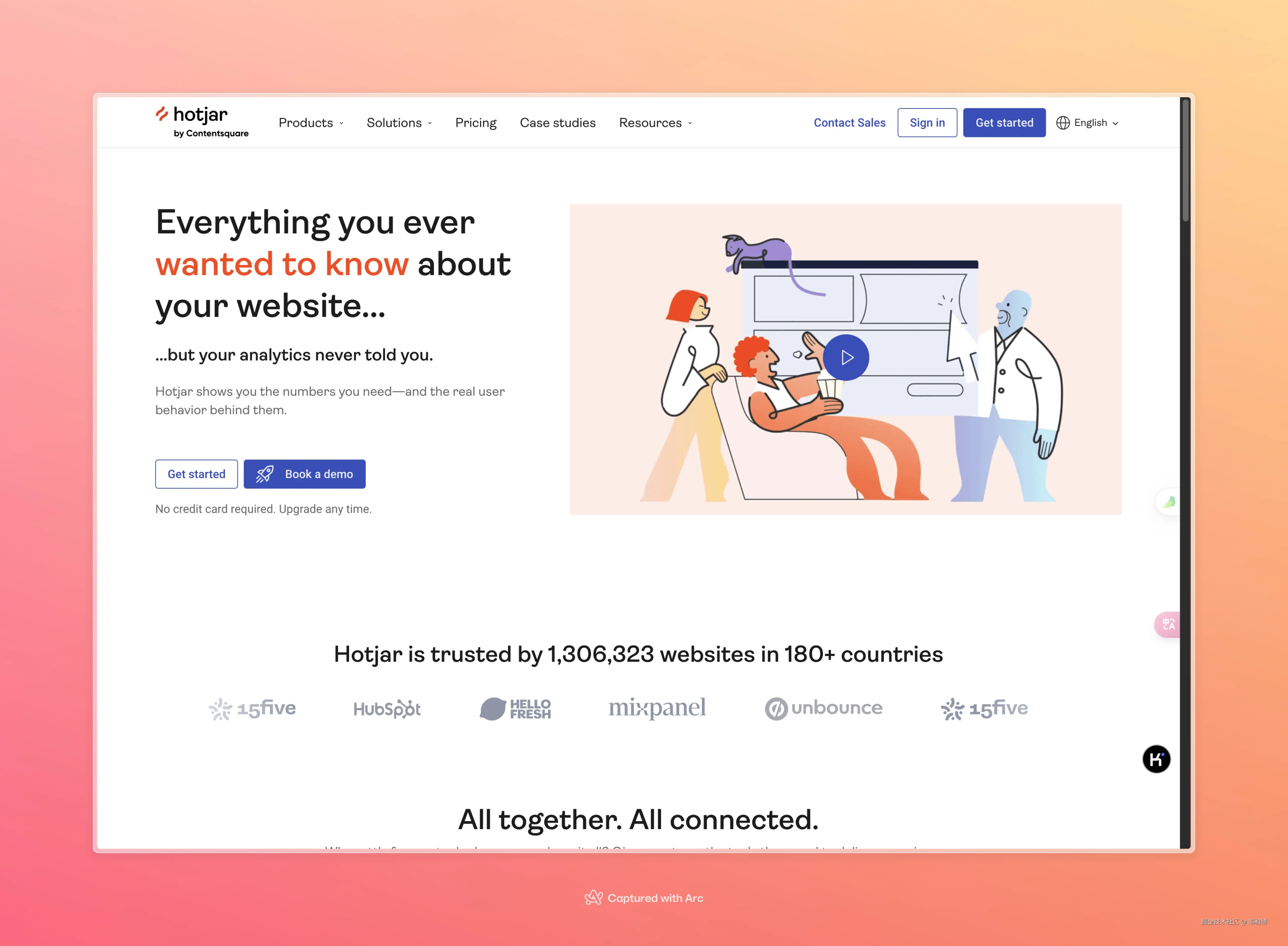 如果你已经在海外市场拥有了自己的官网或应用,那么分析用户行为就变得尤为重要。Hotjar 是一款用户行为分析工具,能够通过热图、录屏等方式,帮助你了解用户在你的网站上的点击、滚动和停留时间等关键行为。通过分析用户习惯,你可以不断优化网站或应用,提升用户体验。