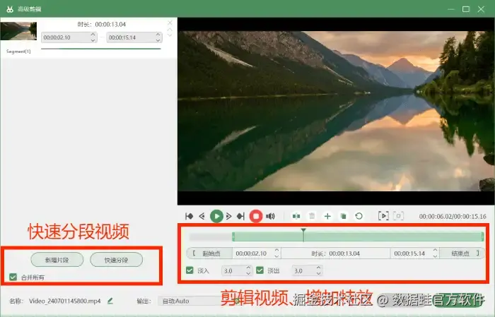 步骤3: 录制完毕后可以进行对视频进行后期编辑,包括快速分段视频,给录制的视频增加特效等,可以根据自身的需求来进行操作。