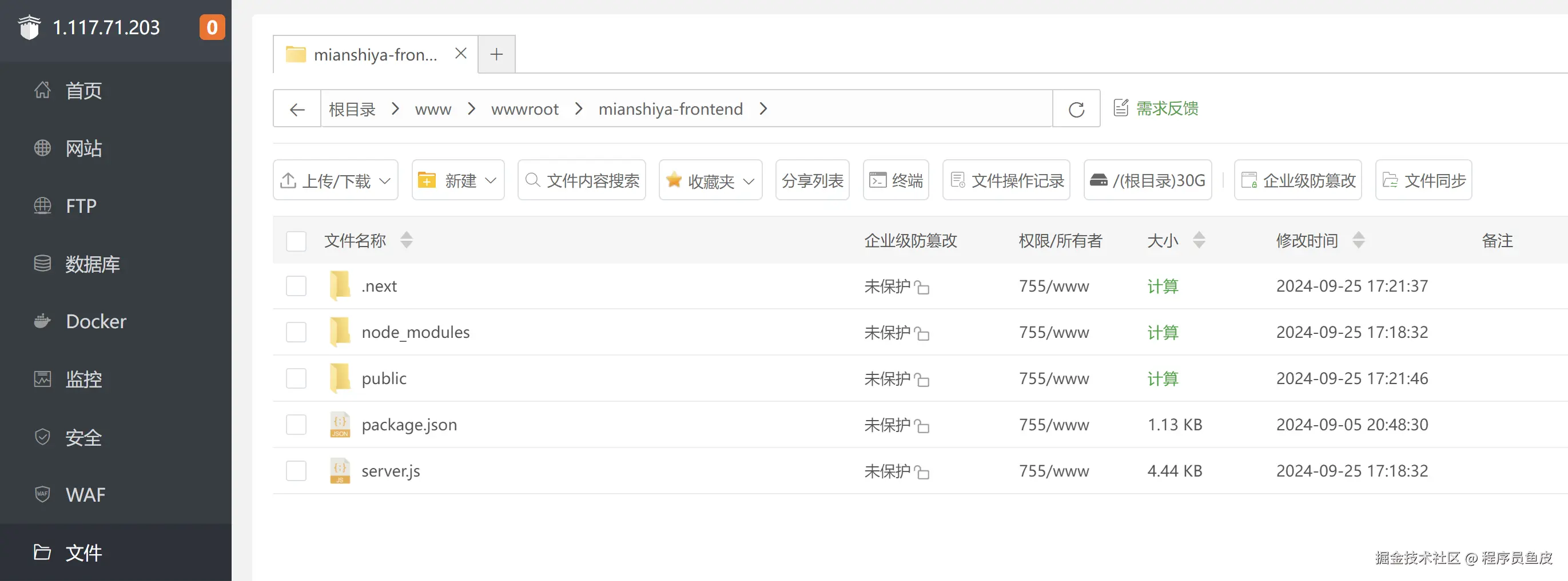 把 standalone 目录下的所有文件上传到服务器上(可以新建一个 mianshiya-frontend 目录):