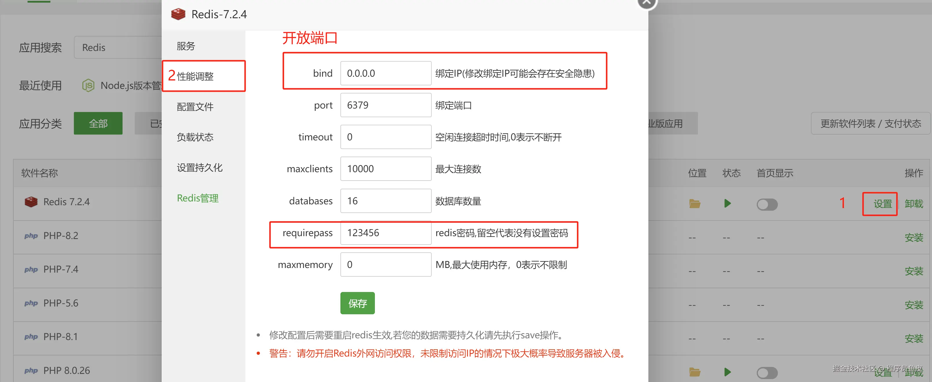 安装完成后,需要配置 Redis,开启远程访问并配置密码,否则我们自己的电脑是无法连接 Redis 的: