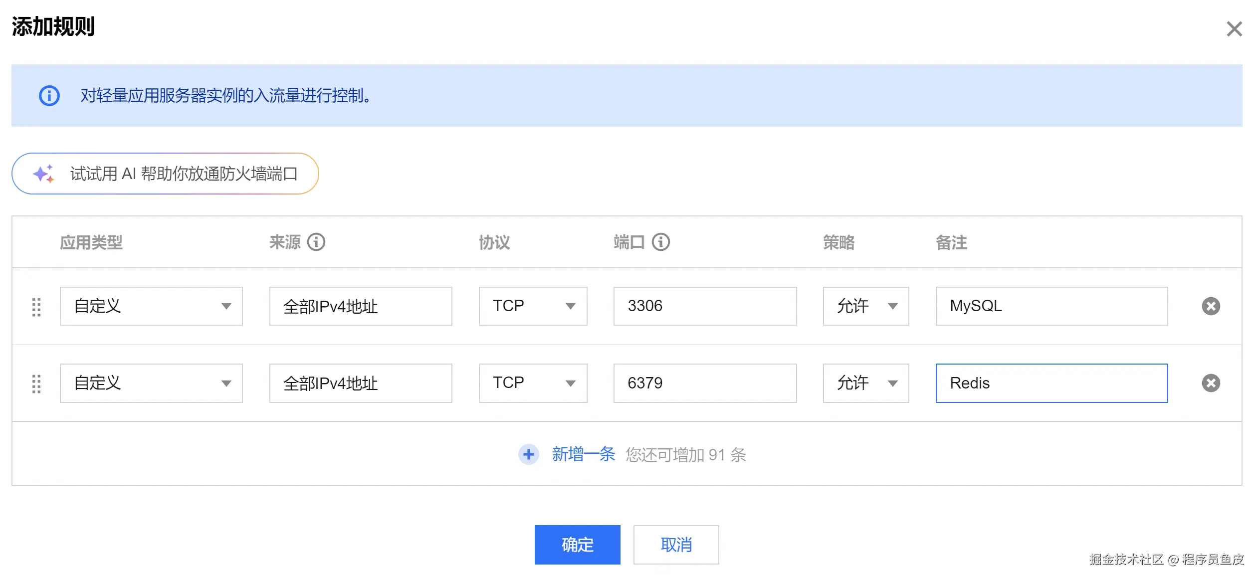 做好规划后,我们需要在腾讯云控制台的防火墙中开通需要外网访问的服务端口:
