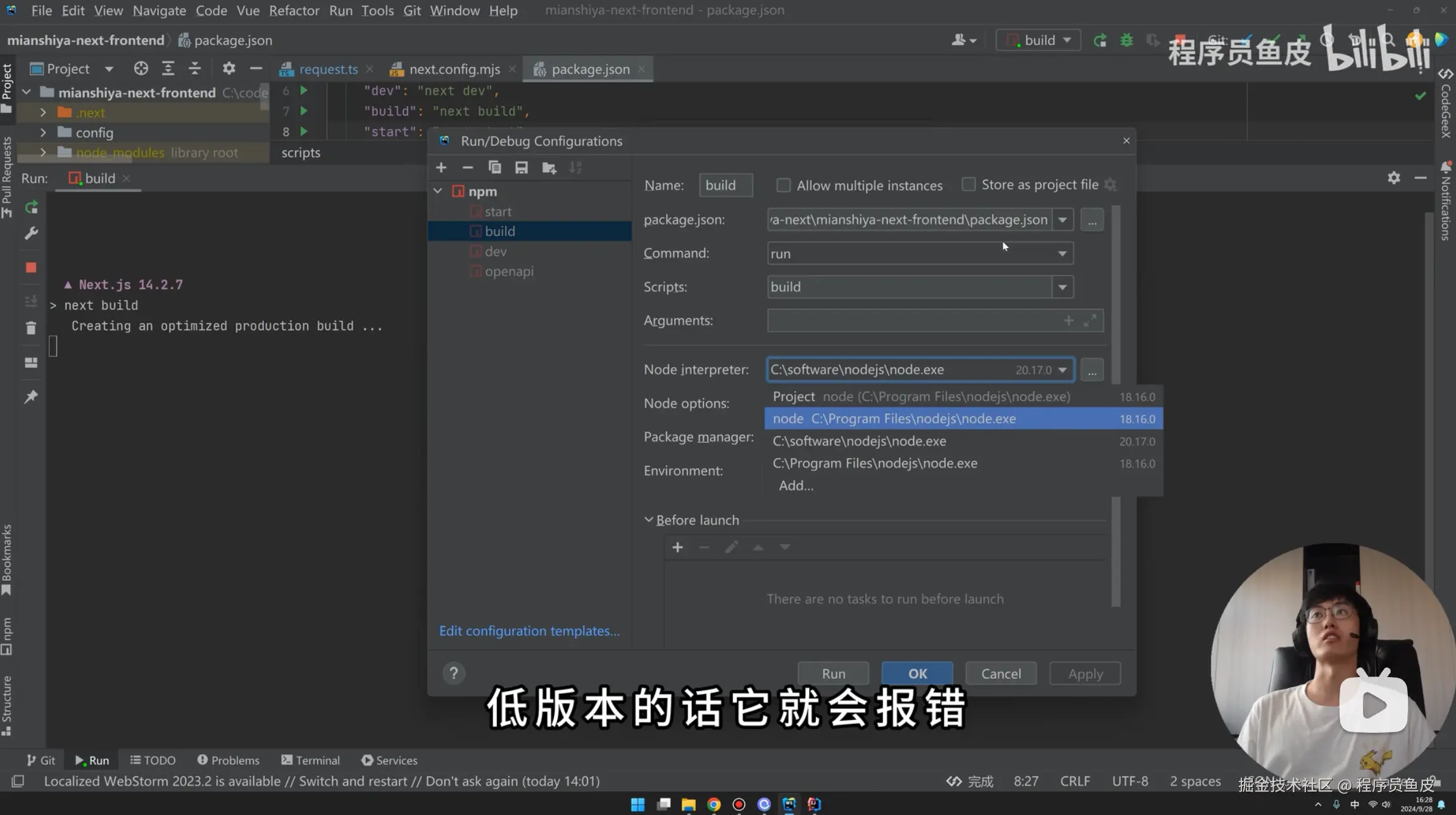 构建时,可能会遇到一些类型错误,这类错误不影响运行,但是会在 Next.js 打包时被检测,可以根据实际情况修改。或者直接在打包时忽略 TypeScript 错误。修改 next.config.mjs 配置文件即可: