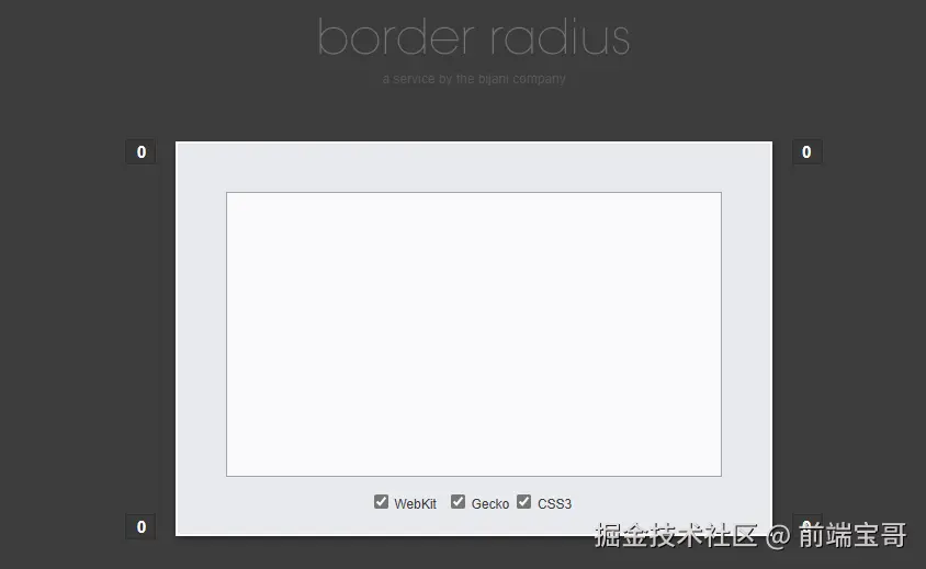 CSS Border Radius Generator 是一款工具,可以帮助你快速创建圆角边框。它提供了一个可视化界面,让你可以调整圆角的半径,并生成对应的 CSS 代码。