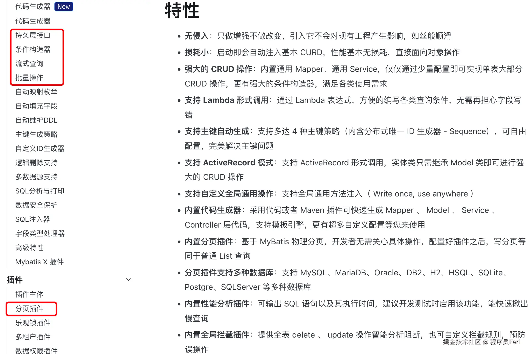 MyBatis-Plus 是一个 MyBatis 的增强工具,在 MyBatis 的基础上只做增强不做改变,为简化开发、提高效率而生。核心特性,如下所示: