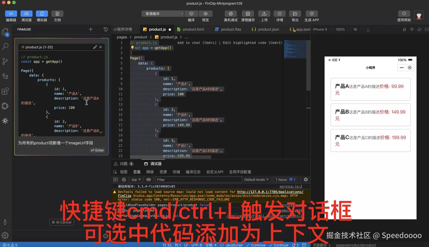 如果prompt出来的效果并不能一次性的调整到位,FinClip的这个开发者工具还能局部修改页面代码,加上小程序页面的实时预览功能,就能够让一个开发小白尽可能的在成本输出之前进行多次调整,不得不说还是非常方便的。