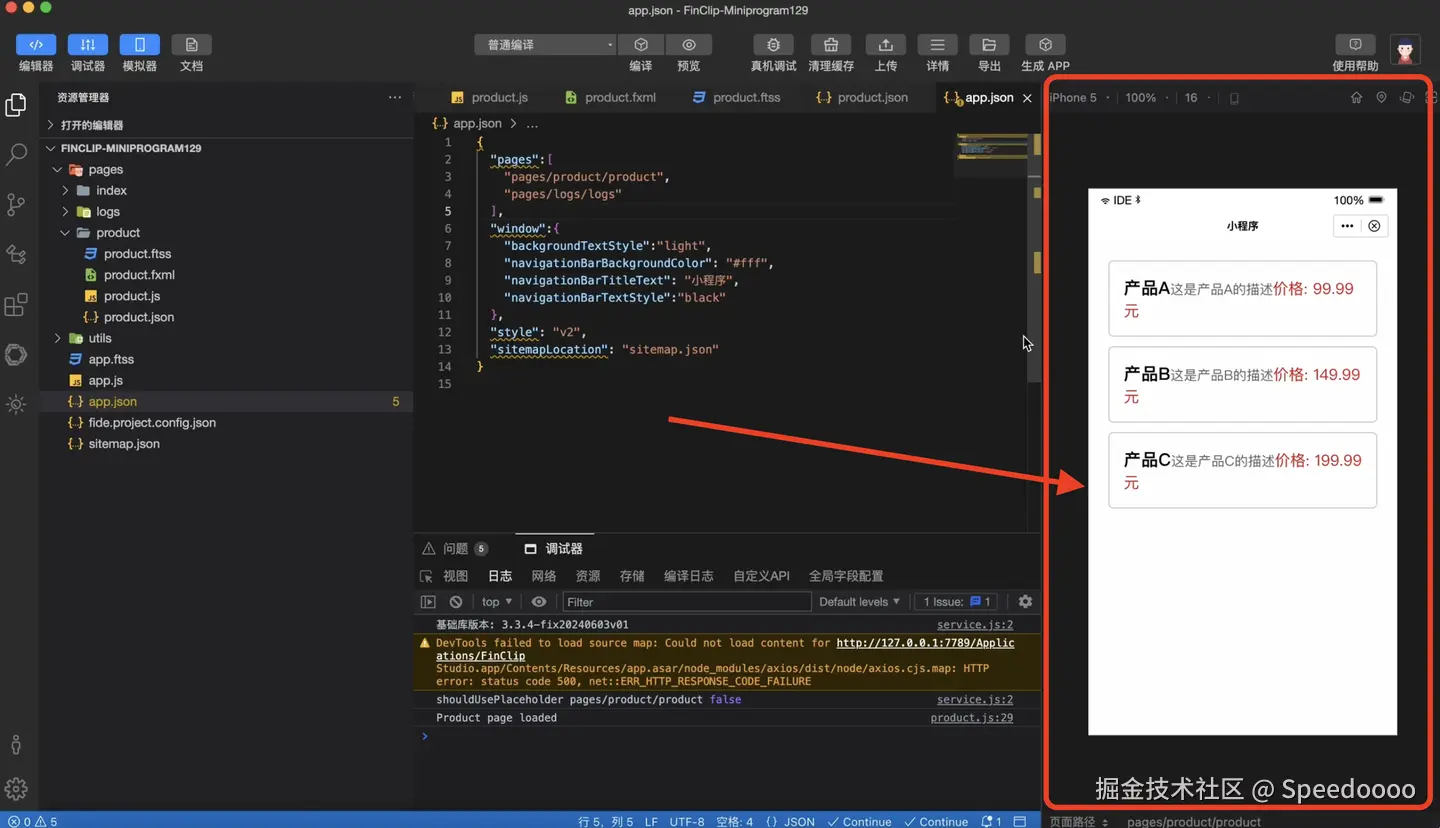 结果还是比较让人意外的,只是简单的prompt,就能得到下图的页面布局和结构,看来FinClip这个产品设计者也是很用心的,非常懂开发者的“痛”。
