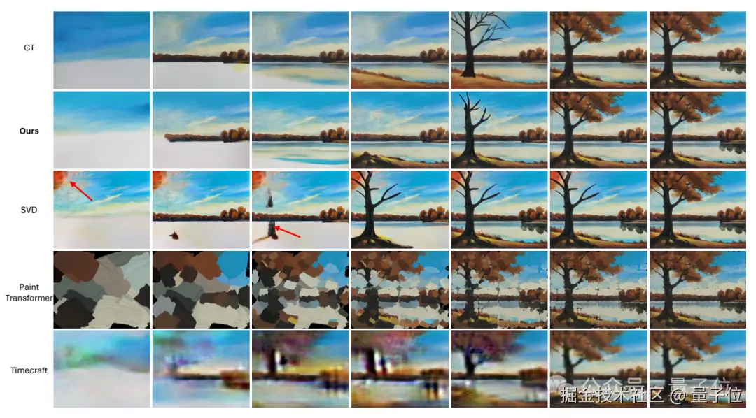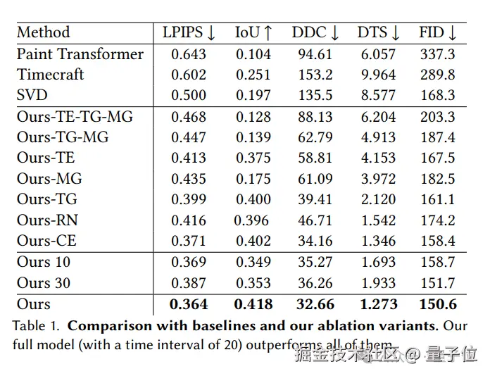 最终,与三个基线方法(Timecraft、Paint Transformer、Stable Video Diffusion)相比,其生成结果明显更优。