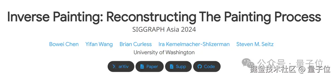 这项魔法来自华盛顿大学,项目名为 Inverse Painting,相关论文已入选 SIGGRAPH Asia 2024,其中两位作者还是东北大学(Bowei Chen )和上海科技大学(Yifan Wang)的校友。