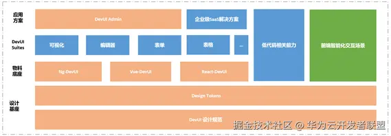 华为云针对场景级解决方案集的构建,提出了DevUI Suites,旨在基于DevUI设计规范与Design Token,在专业的工具场景上场景上做到功能先进&完善性、体验一致性。