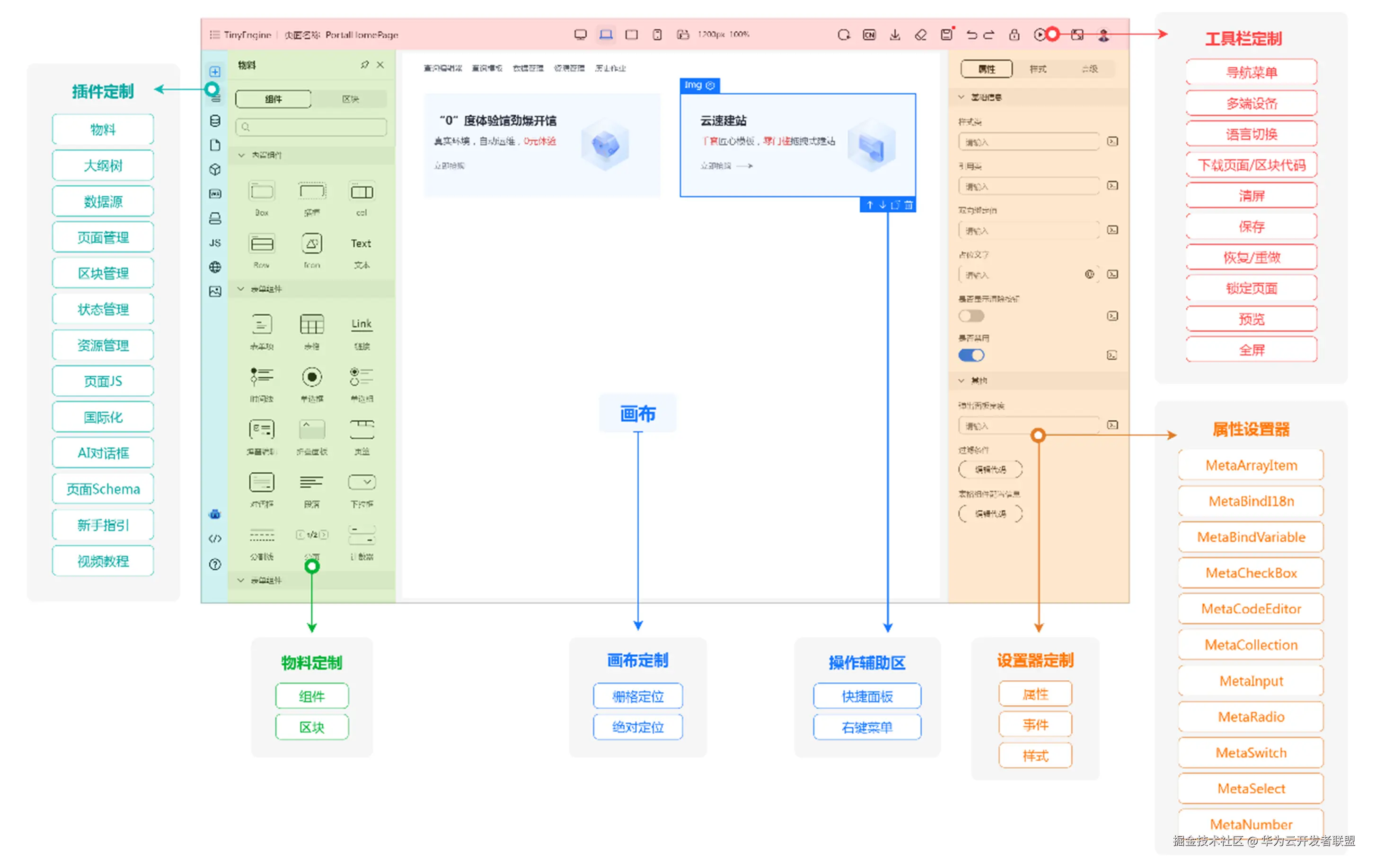 华为云针对开发者场景开发效率的提升,TinyEngine 低代码引擎应运而生。它是一种通用的开发框架,通过对低代码平台系统常用的功能进行解构,将其划分为多个功能模块,并为每个模块定义了相应的协议和开发范式,使得开发者可以根据自身的业务需求,轻松定制开发出自己的低代码开发平台。