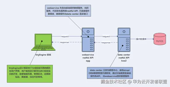 TinyEngine 不仅提供前端部分,也提供了服务端,可帮助开发者打通低代码平台搭建的前后端整体流程,极大地降低了开发者搭建低代码平台的成本。