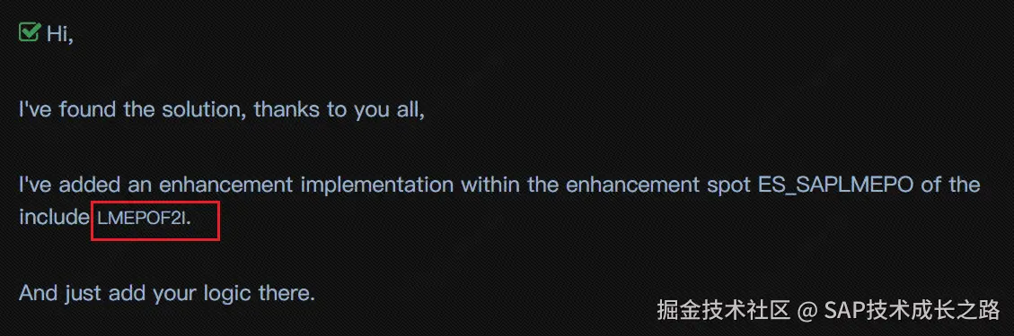- 方案二:还有一个社区用户通过增强 ME22N 的用户出口 LMEPOF2I 去更改利润中心,但是没有出解决方案,点此处链接
