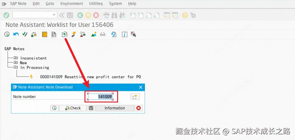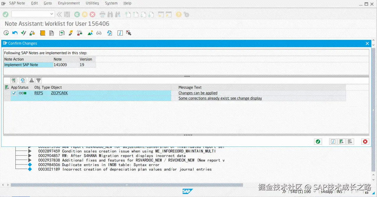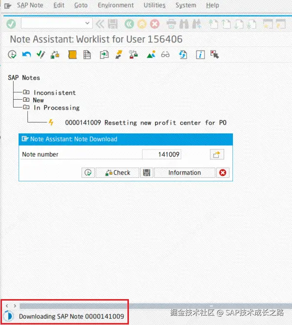 - 下载成功后,选中这一项 Note,点击执行 Implement SAP Note