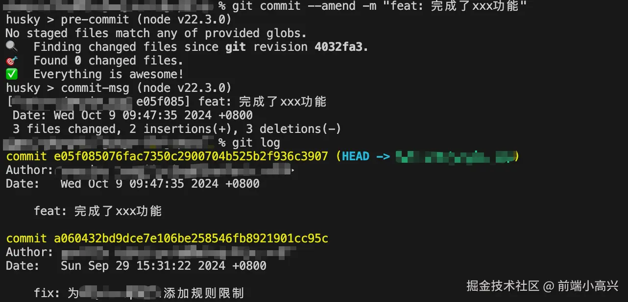 当我们在进行一次提交后,突然发现我们漏掉了一个文件未提交,那么这个时候我们理想状态是,将遗漏的文件补交到之前的 commit , 如果我们不会 git commit --amend那么我们就只能新建一个 commit 去实施补交的这个操作(其他reset 或者 squash也行,忽略)。