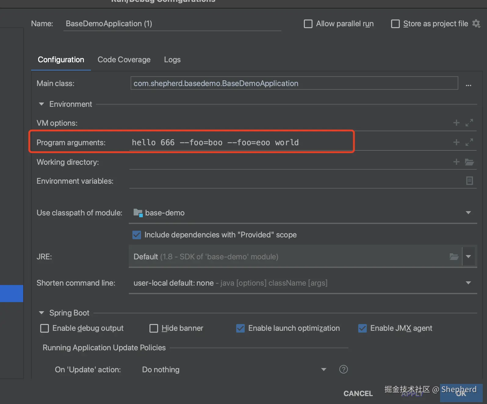 ApplicationRunner nonOptionArg: 666
