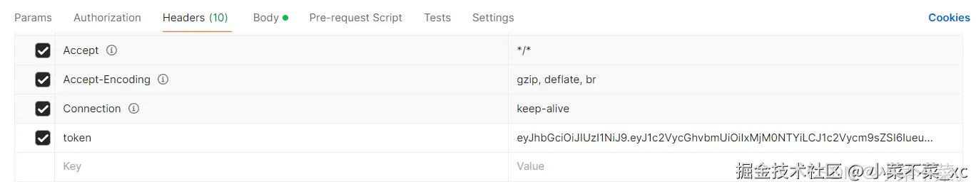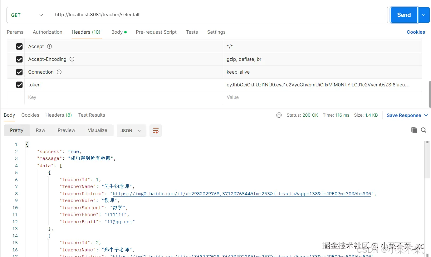 接着我们在请求头中添加上token再进行查询,就可以得到数据了