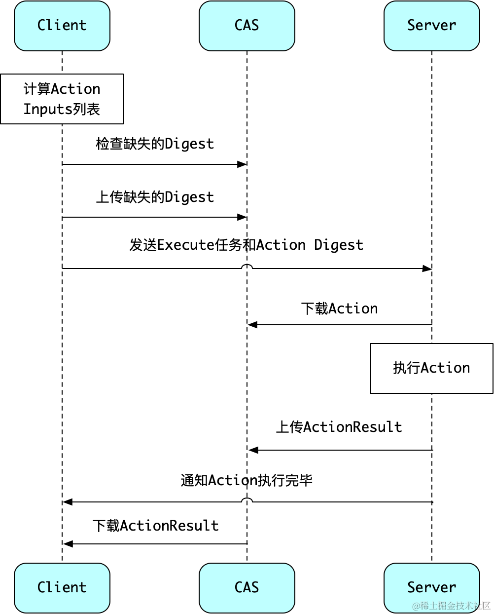 Bazel在构建时,可以把Action发送给另一台服务器执行,等执行完毕后,服务器可以向CAS上传ActionResult,然后本地再下载这个结果。