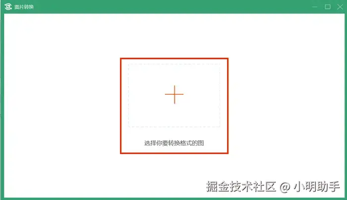 第三步:点击【图片转换】界面中央的【+】按钮,上传要转换成png的jpg格式图片。