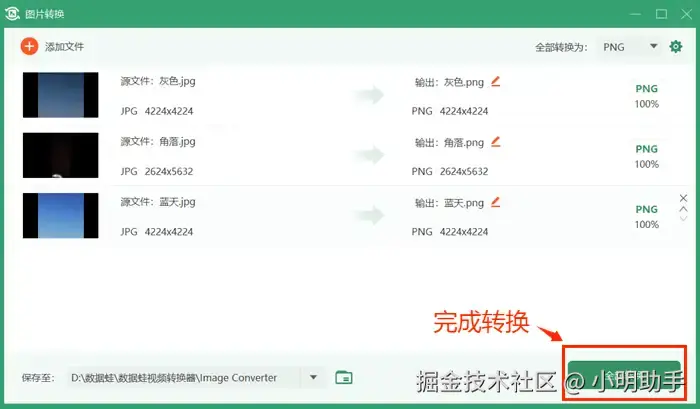 第五步:设置完毕,点击界面右下角的【全部转换】就能得到高质量的png格式的图片啦。