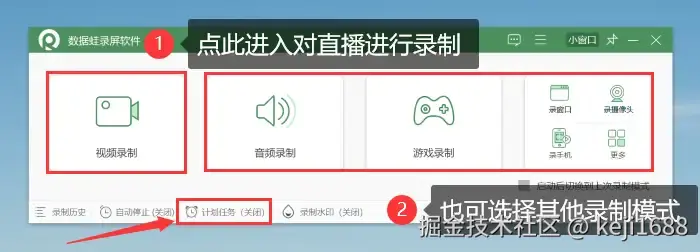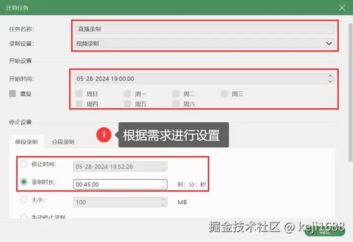 步骤2:在进行直播录屏前,我们可以设定计划任务,如开始时间、录制时长和停止时间等。如此可以确保我们不会错过直播的精彩内容。