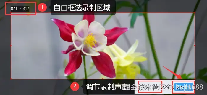 步骤2:确定录制范围、设置录制声音,点击 【开始录制】 即可录屏。