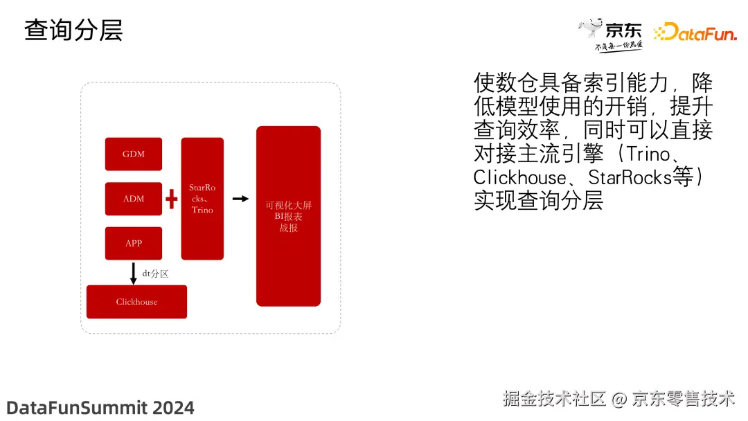 使数仓具备索引能力,降低了模型使用的开销,提升了查询效率,同时可以直接对接主流引擎(Trino、ClickHouse、StarRocks 等),实现了查询分层。