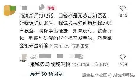 根据当事人的说法,滴滴方无法告知原因,只是让她保护好账号。“如果你判断是我账户被盗,请你拿出证据,如果没有就告诉我,到底是谁用我的账户盗开发票,对方(滴滴)说无法解答。”