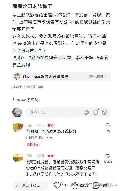 帖子讨论热度很高,狗蛋看到时点赞已经过万,评论过千。当时看到帖子,狗蛋第一时间截图,预测帖子不会存在太久,不出所料隔天就没了,国庆假期,滴滴风控的办事效率还是挺高的。