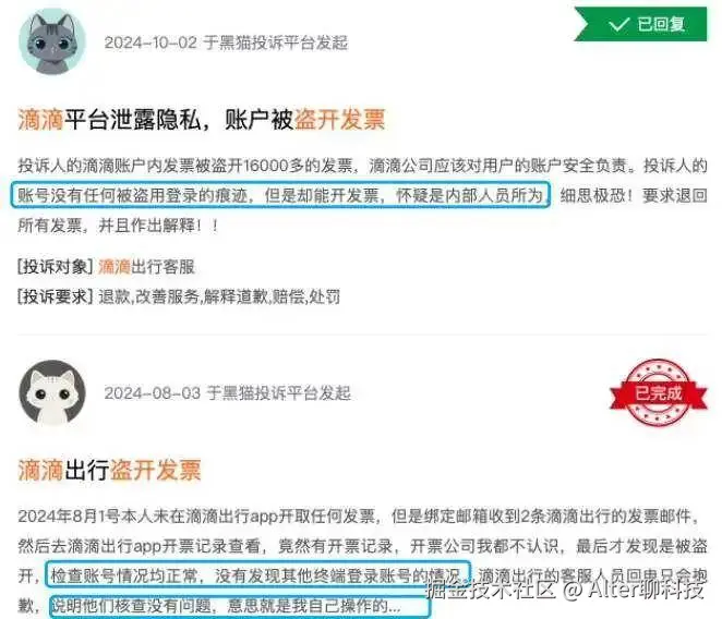 结合社交平台的爆料和黑猫平台相关投诉来看,狗蛋推测,从没开过票,或者已经长时间没开过票的用户,被盗开的概率更大。