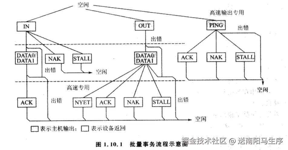 批量传输(Bulk)分为批量输出事务(主机写)和批量输入事务(主机读):