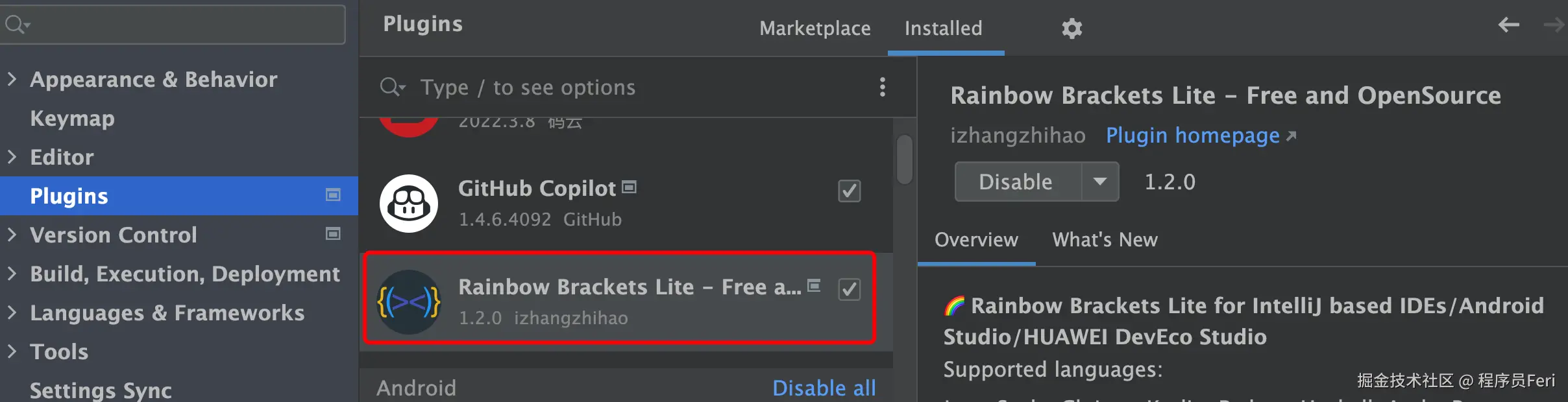 Rainbow Brackets Lite 插件,成对的括号用相同的颜色表示出来了