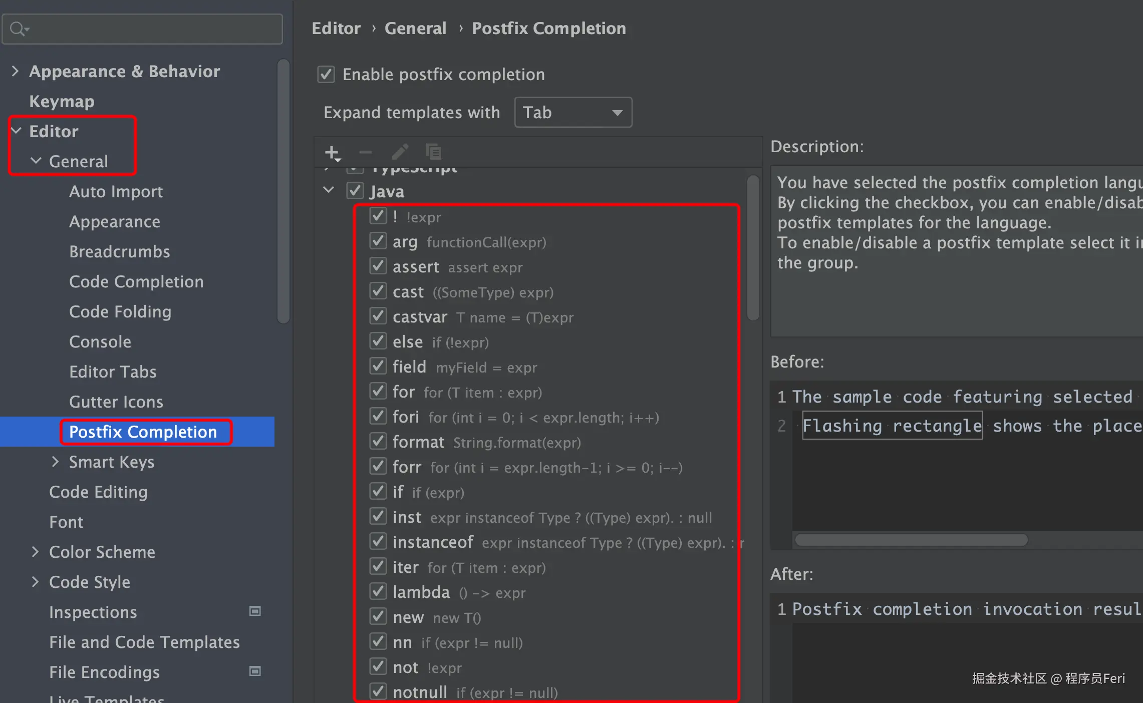 例如 : idea默认是sout , 可以在Postfix Completion里面查看,类似的 fori等都是在里面设置