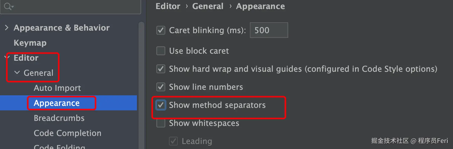 ctrl+[ ctrl+] 可以快速跳转到方法大括号的起止位置,配合方法分隔符使用,不怕找不到方法在哪儿分割了