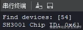 可以看到,“串行终端”串口中先是显示了扫描到的I2C总线设备地址,设备地址为54,要注意的是,这的设备地址是以十进制表示的,对应的十六进制就是0x36,也就是板载六轴传感器SH3001的I2C设备地址。
