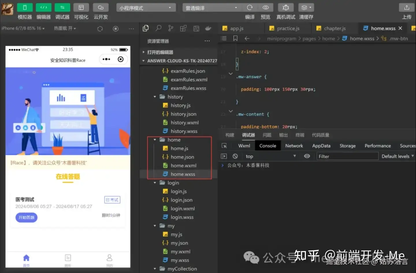 开发一款答题小程序界面,涉及到的技术栈,主要包括微信小程序