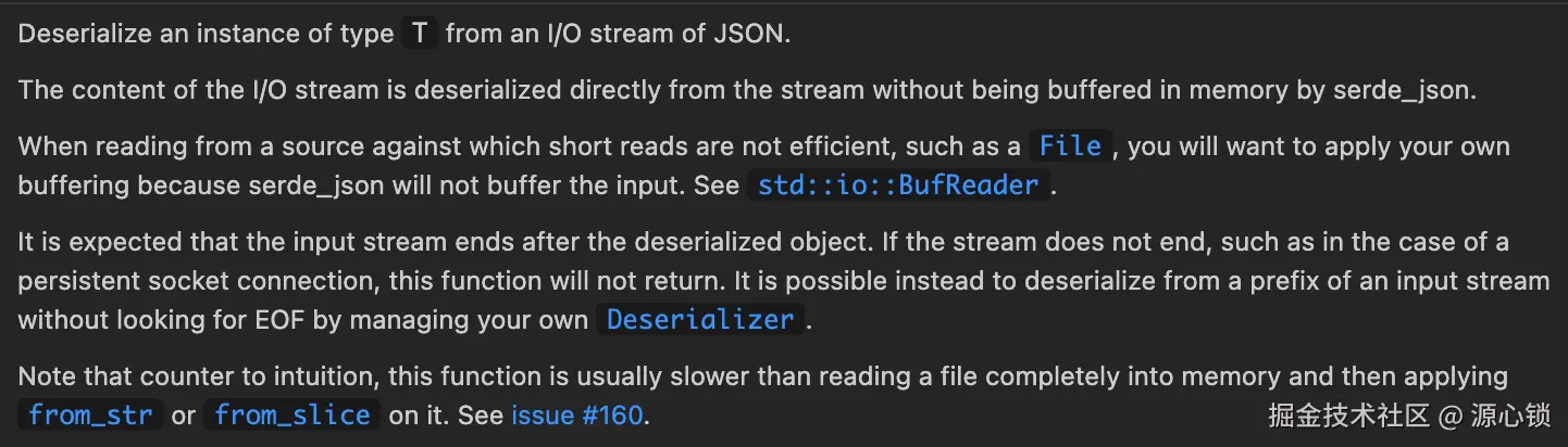 File::open的动作,存在 IO 瓶颈 serde_json::from_reader做json序列化,存在性能瓶颈。