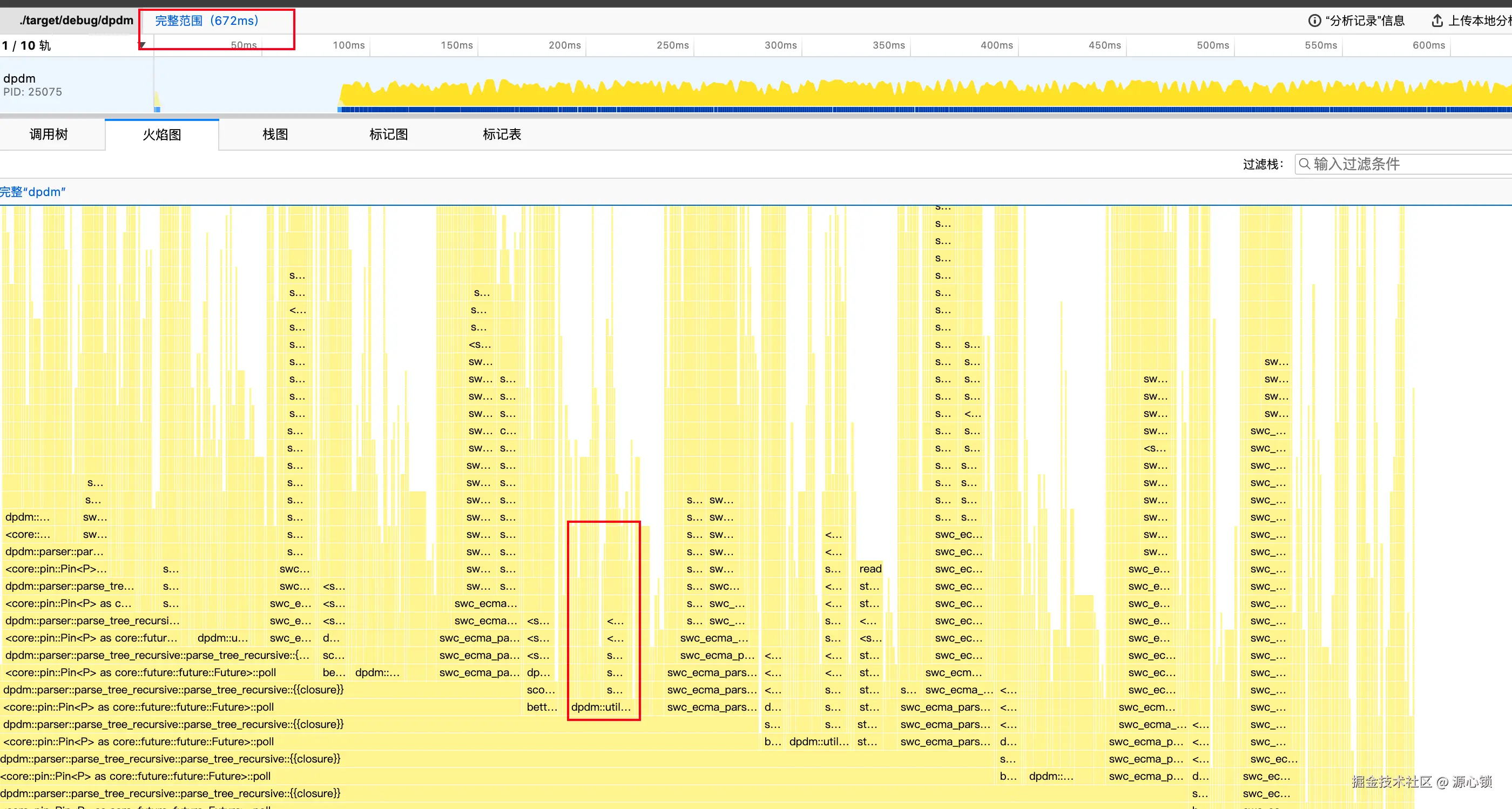 此时再进行一次性能分析。最终可以看见,优化后速度从 996ms 再次降低,现在是 672 ms。