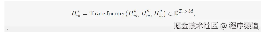 其中 m∈{t,a,v}m∈{t,a,v},Hm∗H**m∗ 被视为转换后的序列特征。然后,我们进行线性变换,将提取的特征映射到输入空间。