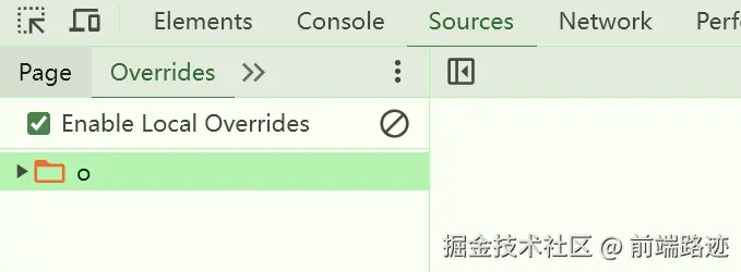 打开 Chrome 调试工具,然后找到 Source 页签下的 Overrides。