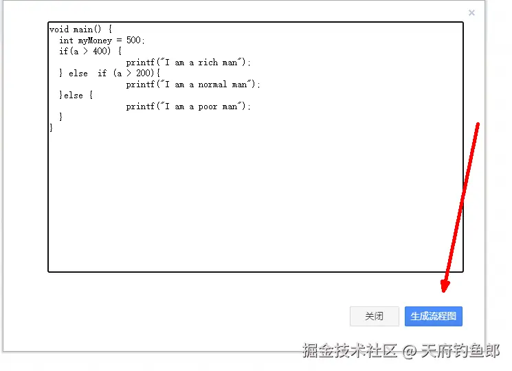 当我们听到这个噩耗的时候,5个程序猿当场晕倒了4个,我擦了擦头上的汗。。。扶起晕倒的队友。。。我拿起键盘,使出毕生所学,连续敲了3天3夜的代码,做出了一个可以把代码转为流程图的工具: